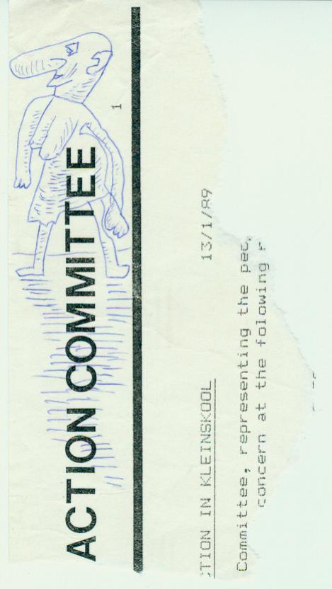 I kept this for the drawing, but it is in fact a copy of a telex from a government department in reply to my request for data on the 1988 municipal elections in black townships. Everyone knew that a UDF-led boycott had rendered the poll a farce, and I suspect I put questions to the officials concerning the percentage poll, which would have been abysmally low. Here they were obviously playing for time.